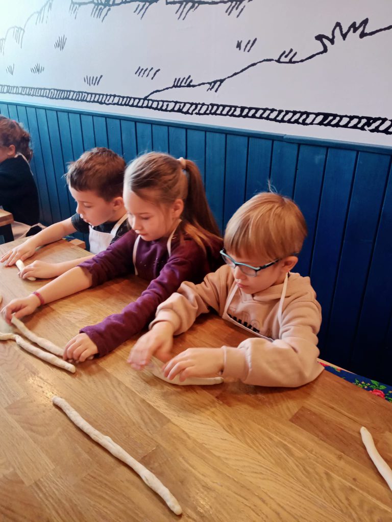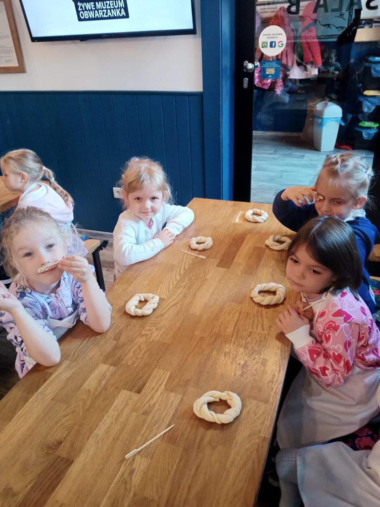 Po pokazie każdy uczestnik własnoręcznie wykonał obwarzanka według instrukcji pani prowadzącej.