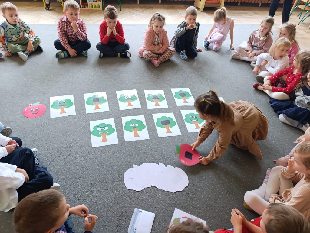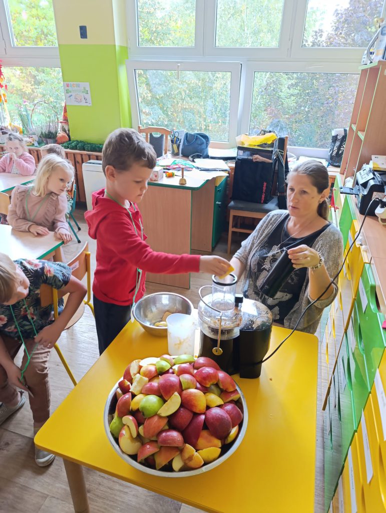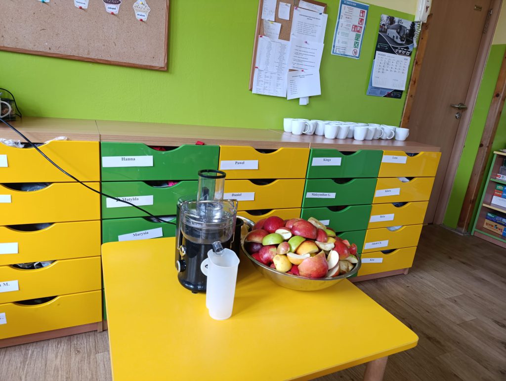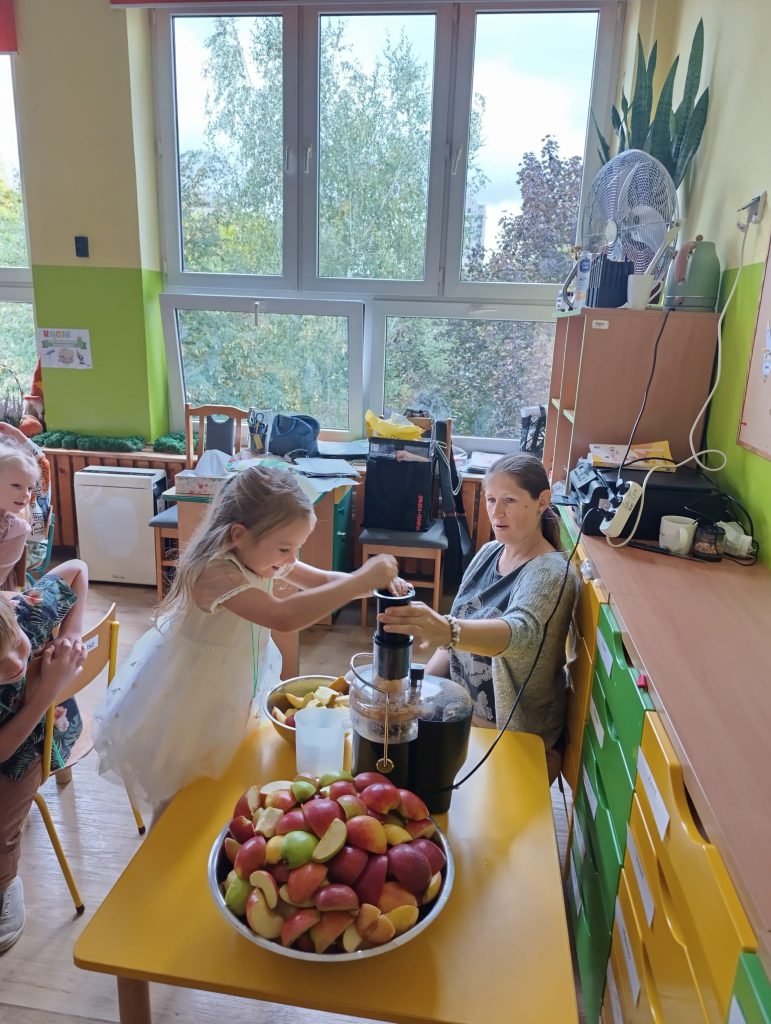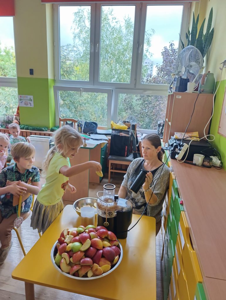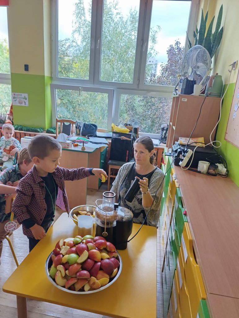 29.09 obchodziliśmy Dzień Polskiego Jabłka. Przedszkolaki segregowały jabłka wg wielkości i koloru, przeliczały je oraz dowiedziały się skąd się biorą jabłka w sklepie. Na koniec Przedszkolaki samodzielnie zrobiły sok z jabłek. Dziękujemy Rodzicom za jabłka.