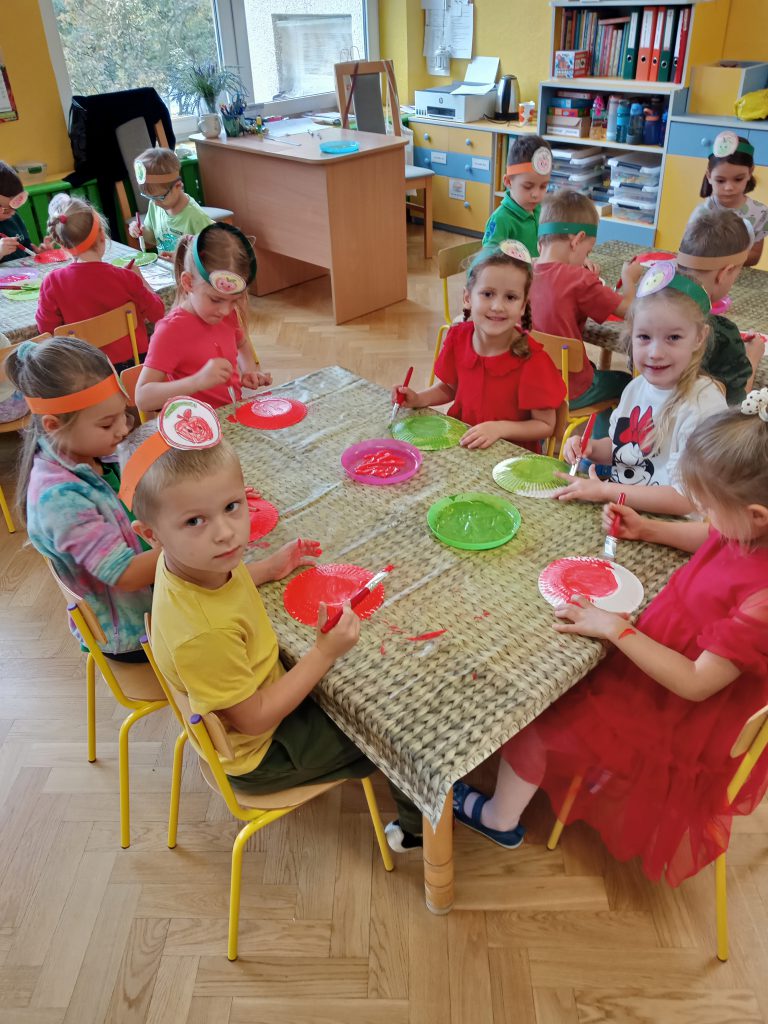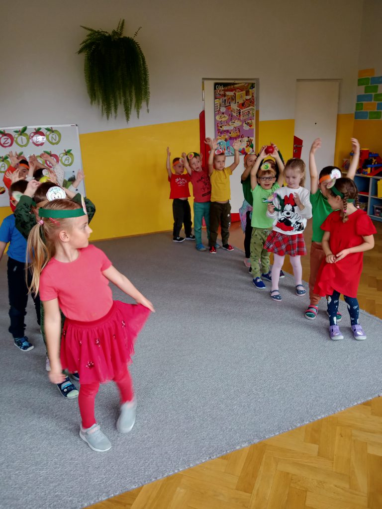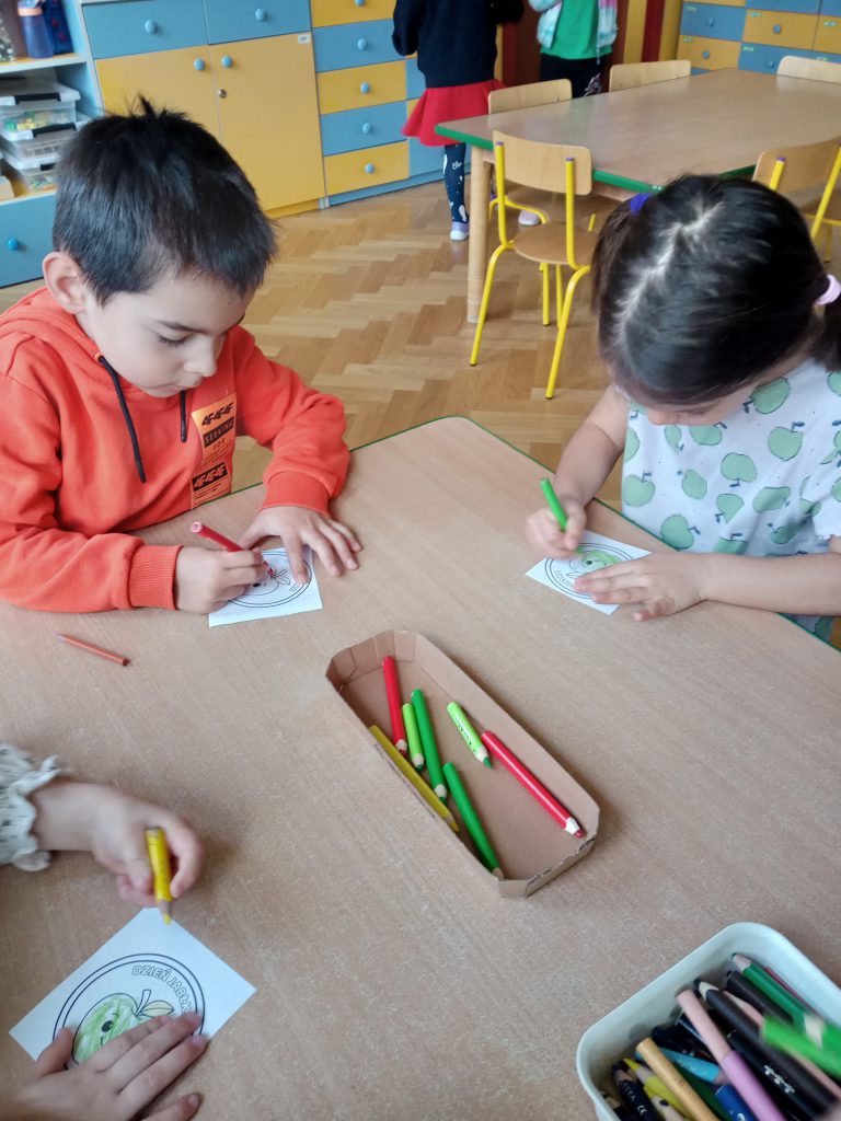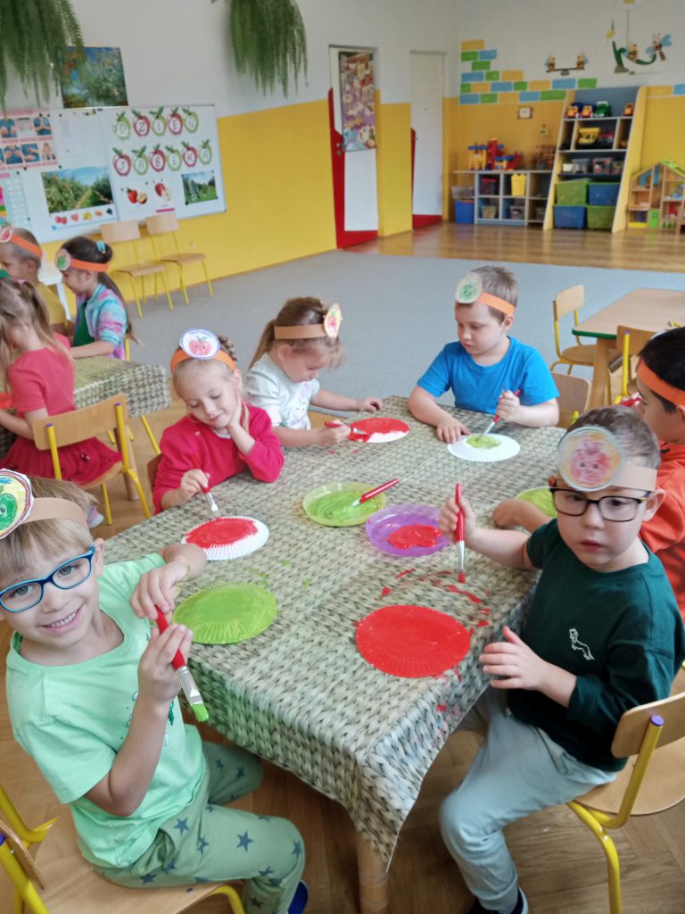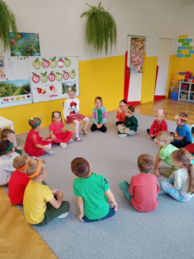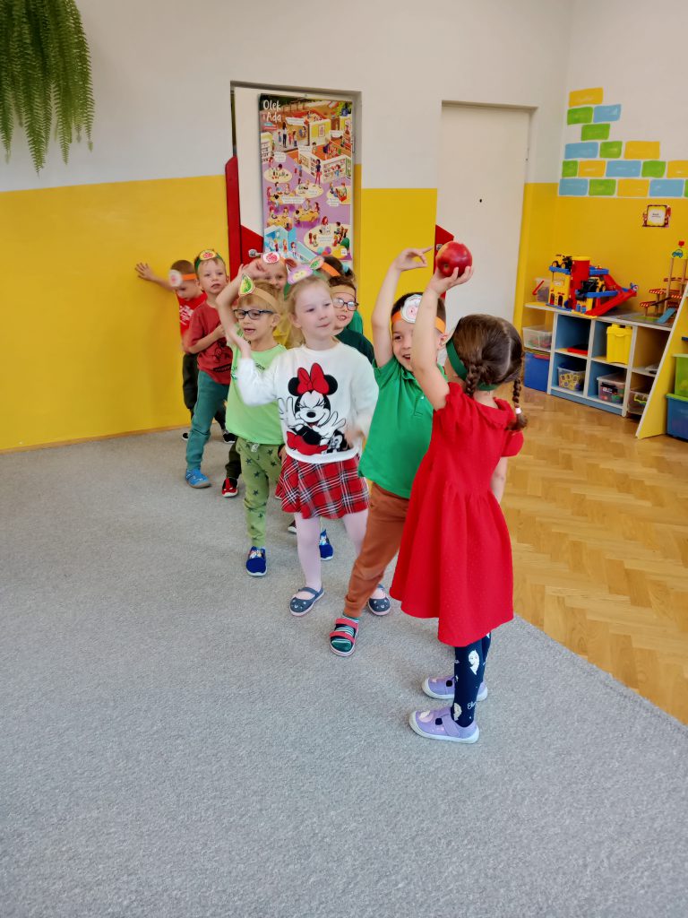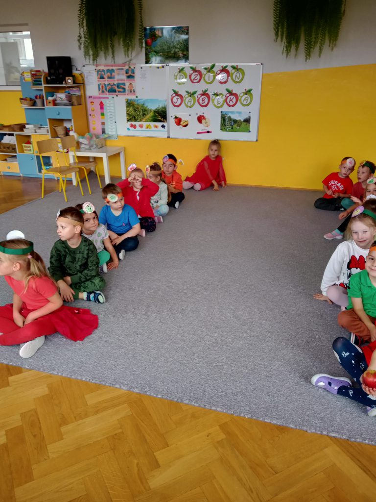 To był dzień pełen jabłkowych wrażeń. Ciekawostki o jabłkach, zabawa przy piosence „Małe czerwone jabłuszko”, zabawa „Wędrujące jabłko”, Ciepło-zimno, W jabłkowym królestwie ciszy, jabłkowa praca plastyczna oraz mega jabłkowa uczta. Dziękujemy Rodzicom za wszystkie jabłkowe pyszności, a szczególnie za upieczone szarlotki