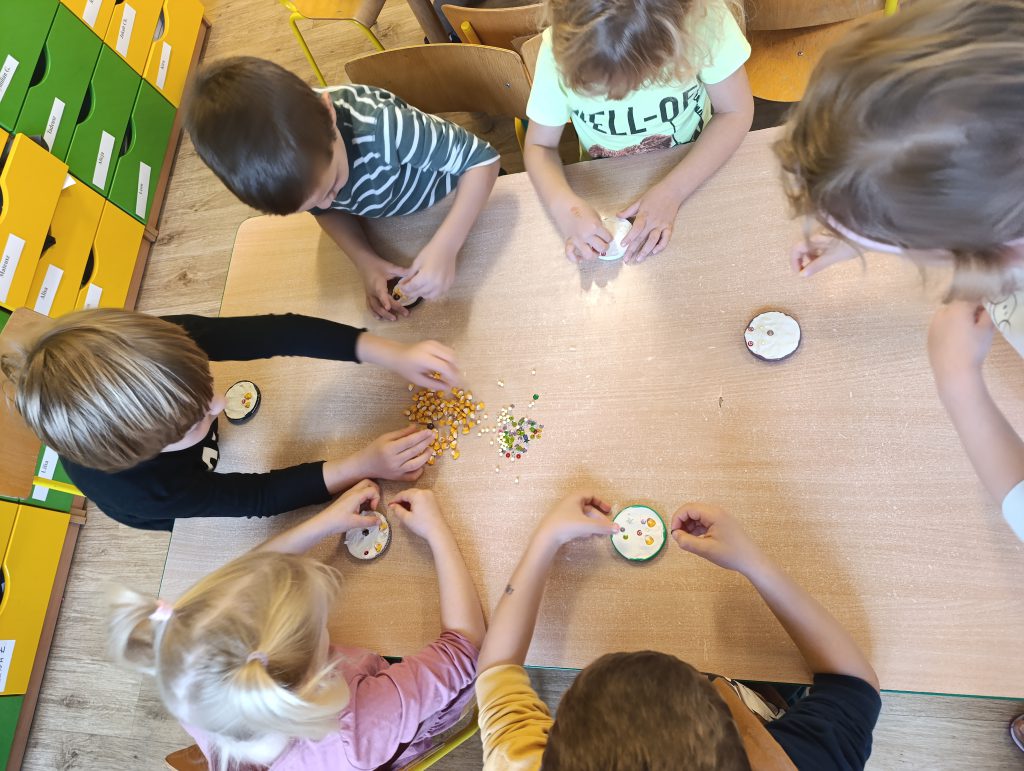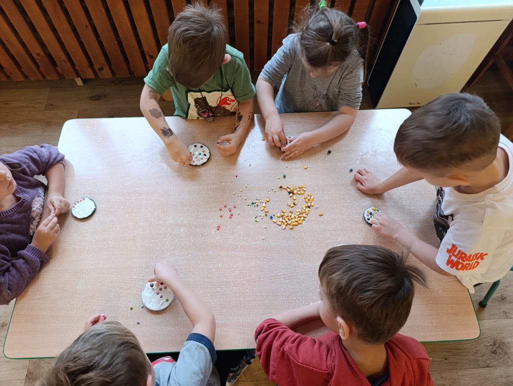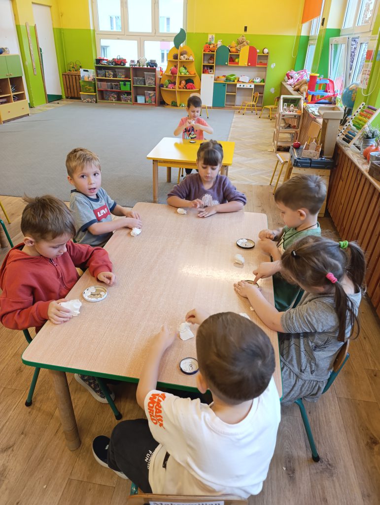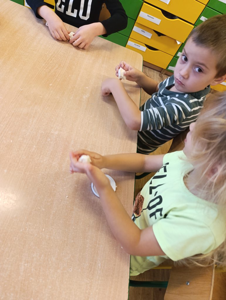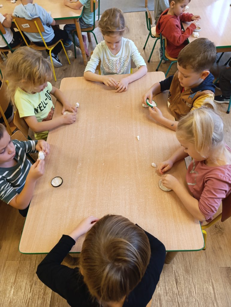 Efektem ćwiczeń motoryki małej czyli rączek i paluszków, doznań sensorycznych związanych z plasteliną i innymi materiałami są nasze piękne, kolorowe ślimaczki.