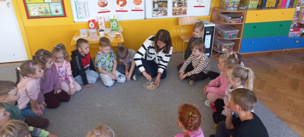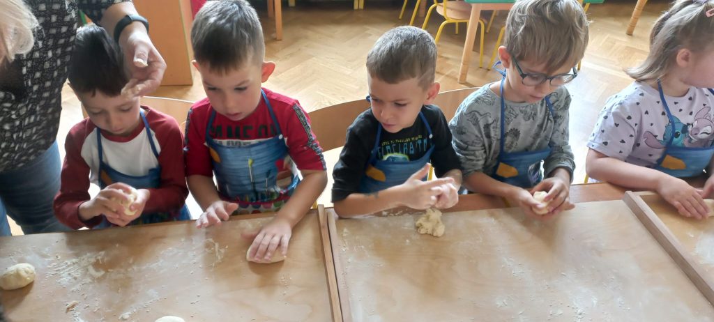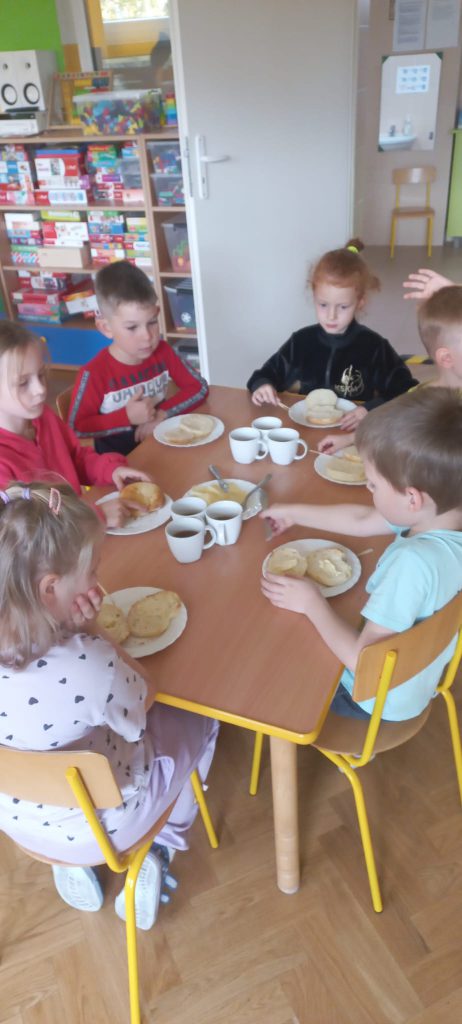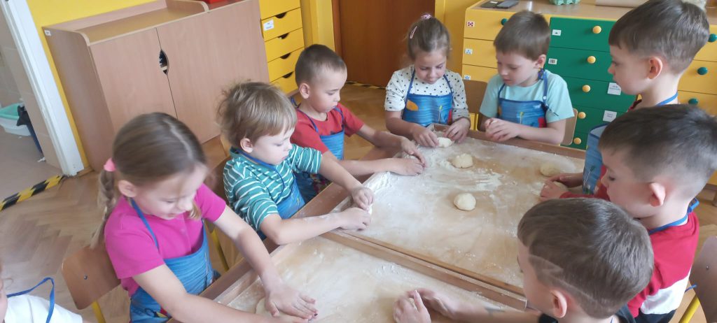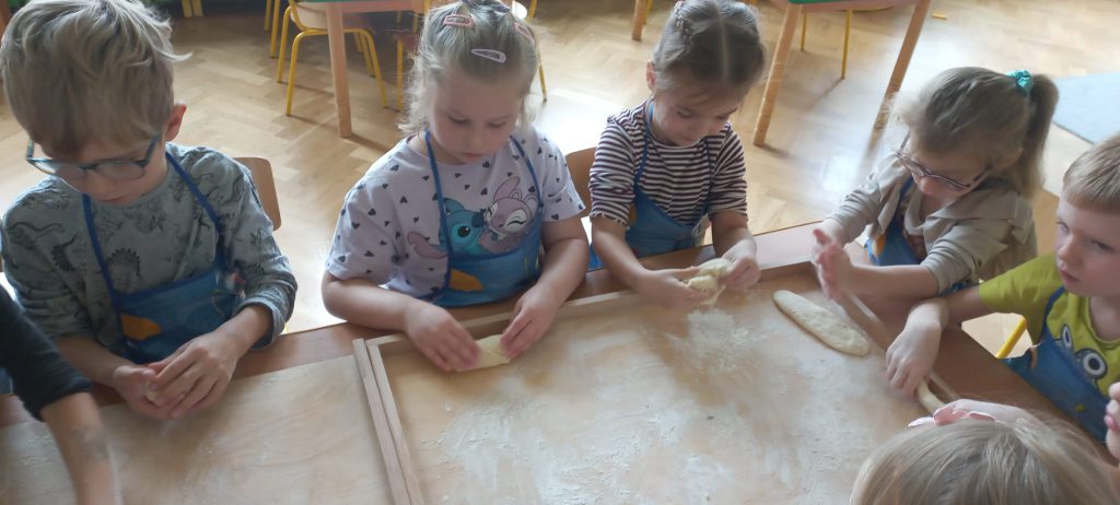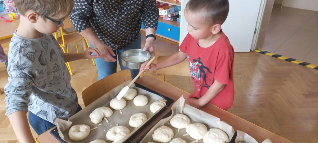 W ramach projektu ” Piękna Nasza Polska Cała” grupa VIII zapoznała się z etapami wypieku chleba i samodzielnie dzieci przygotowały bułeczki. Grupa realizowała w ten sposób zadanie”Dobry jak chleb”.