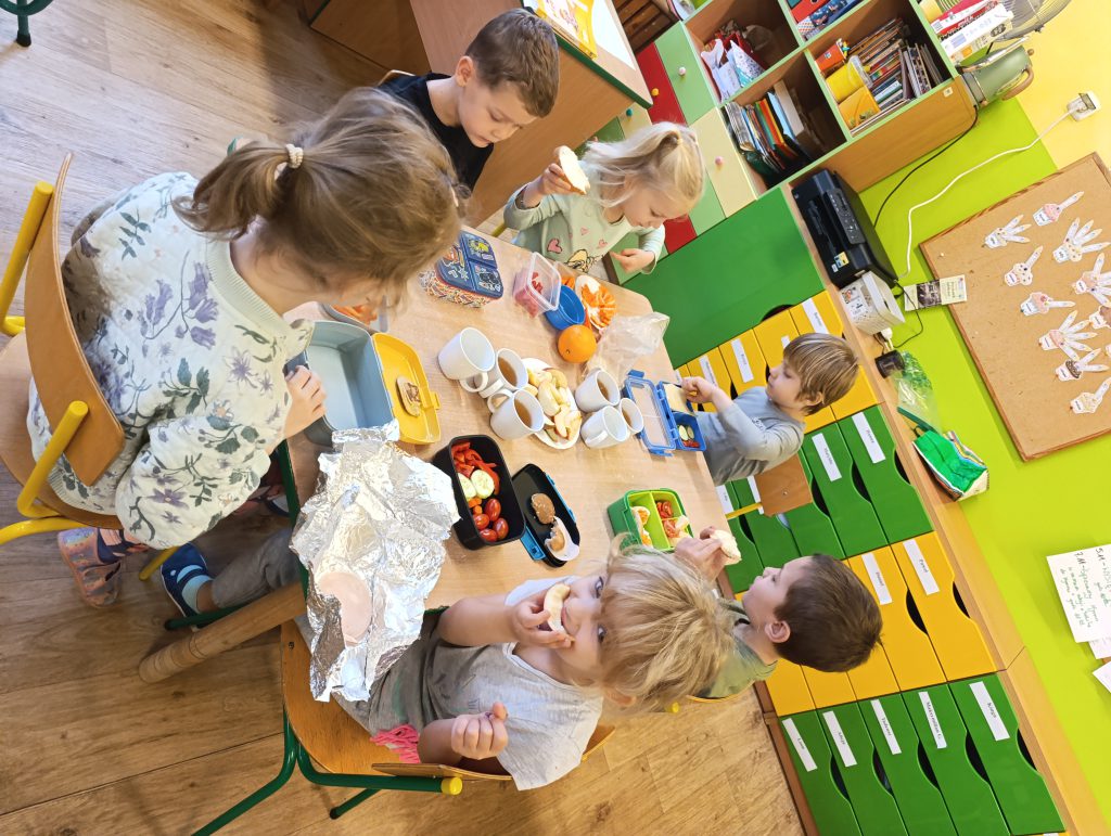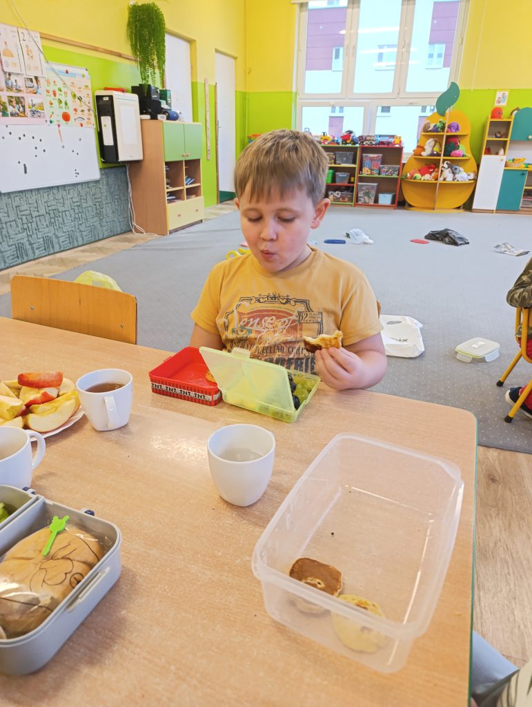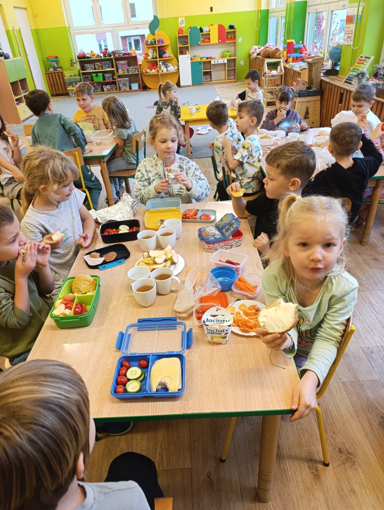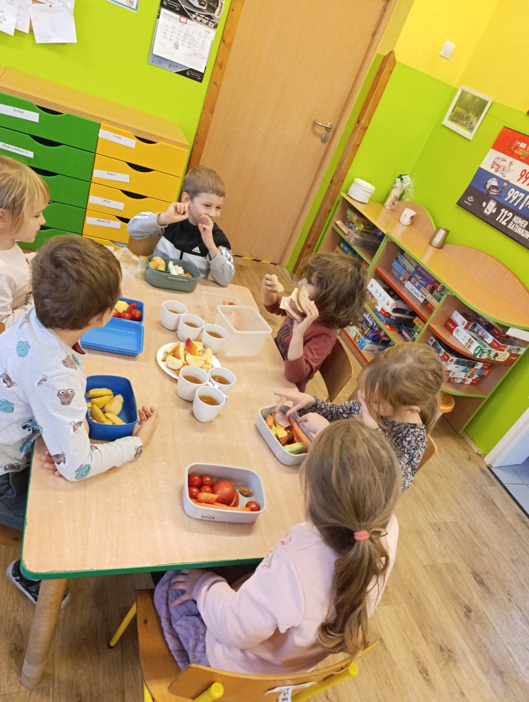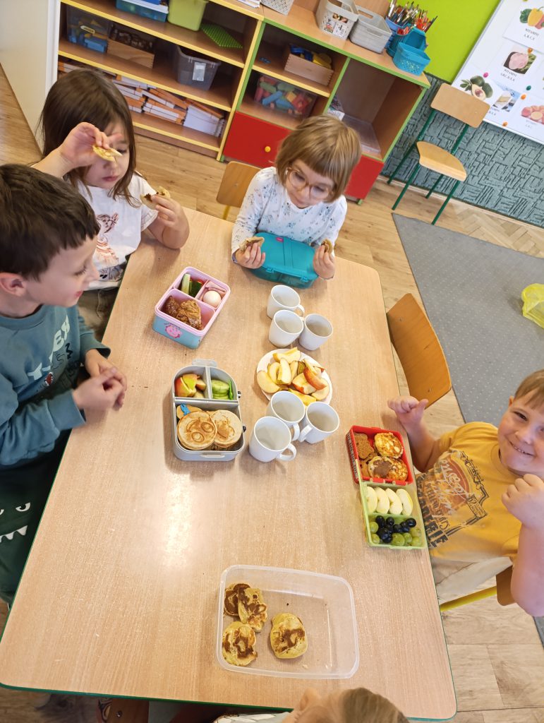 Zdrowe, pełne witamin i kolorów śniadanie w Gr 3 sprawiło wiele radości dzieciom. Rodzice wraz z Nauczycielami kształtują nawyki zdrowego żywienia od najmłodszych lat. Dziękujemy Rodzicom za zaangażowanie oraz pełne śniadaniowki!!! Największą popularnością cieszyły się racuchy mamy Lili!