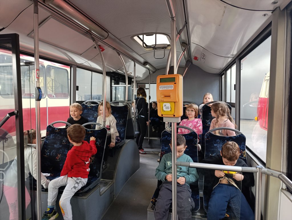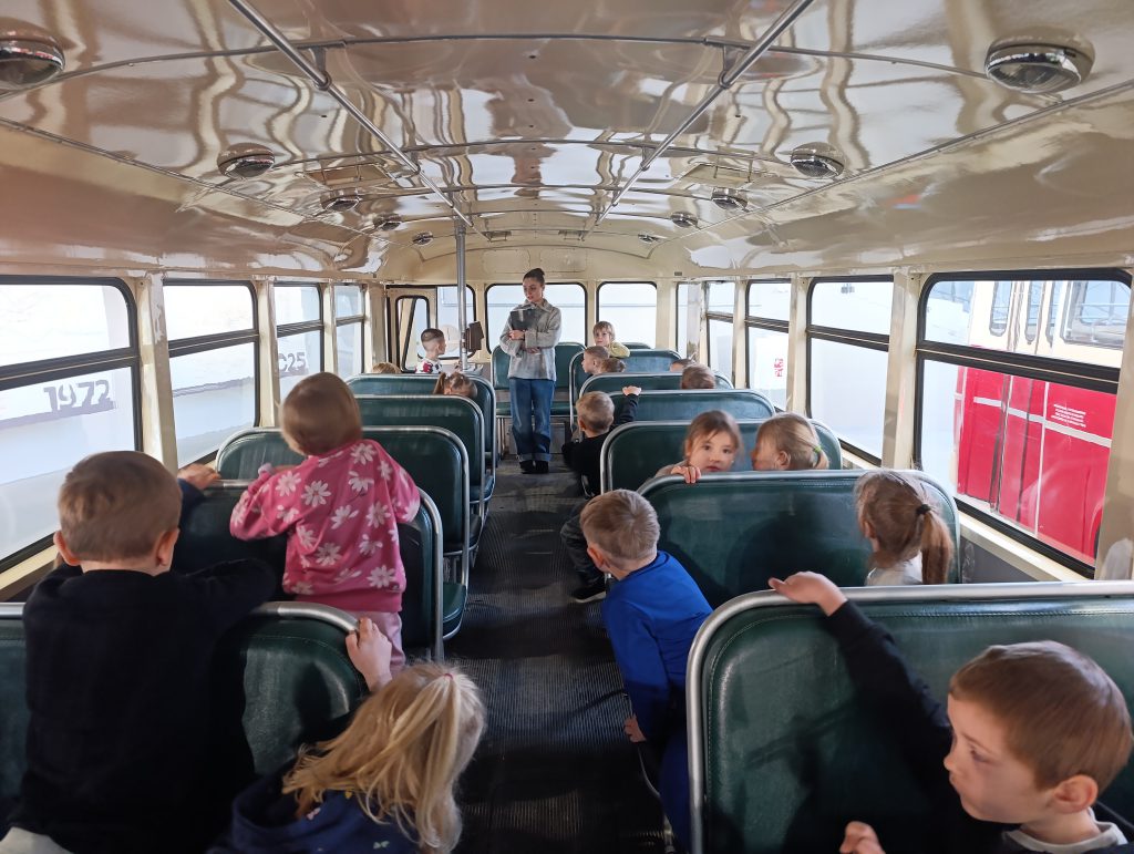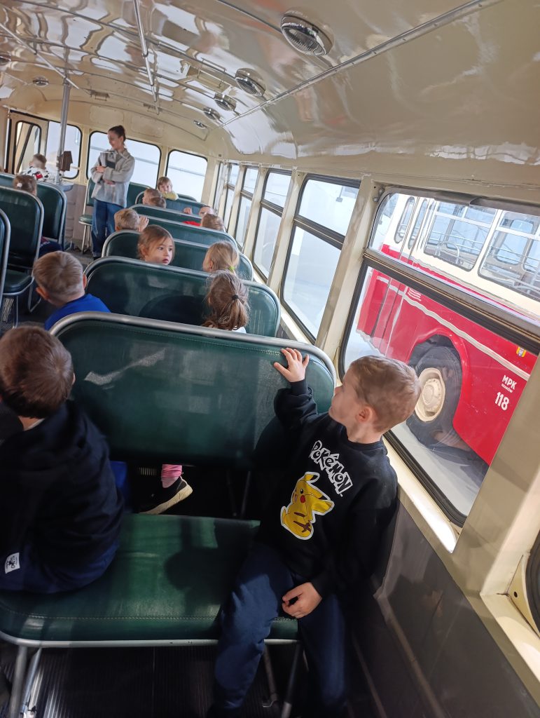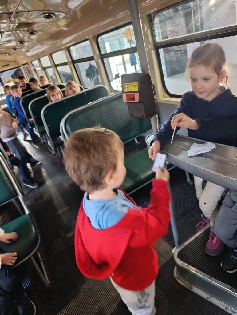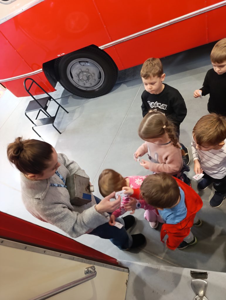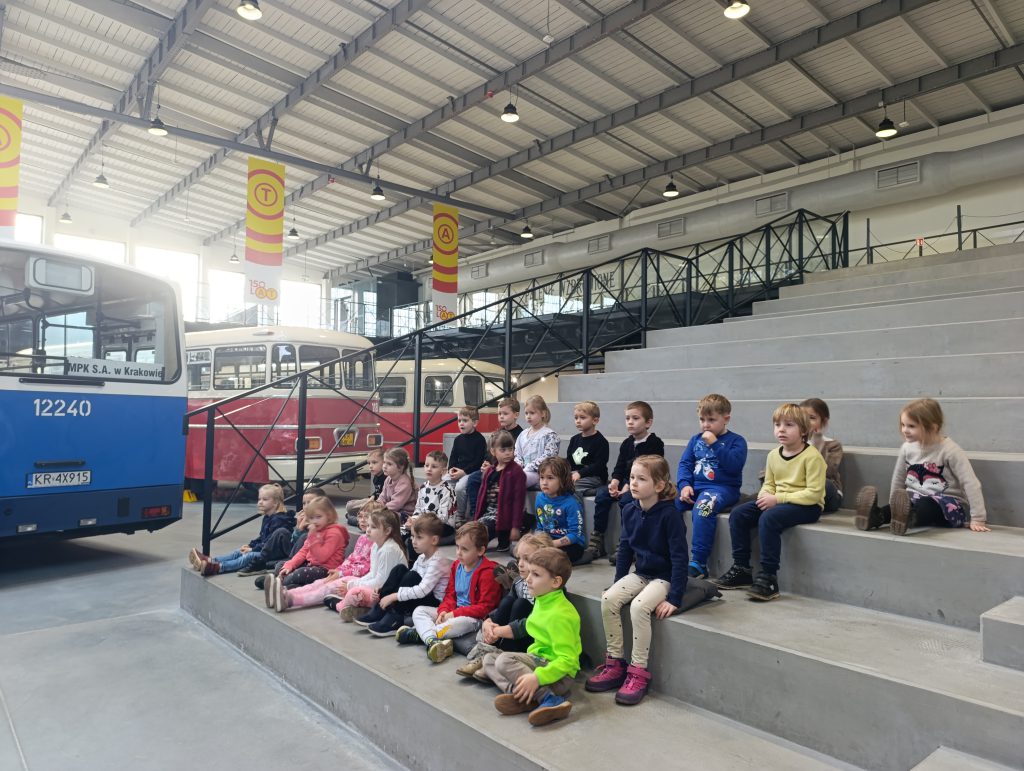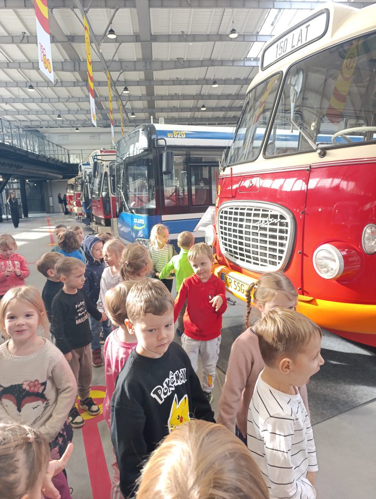 Przedszkolaki odwiedziły czasową wystawę w Muzeum Hangar Czyżyny. Wystawa przeniosła nas w czasie do lat 70, przedszkolaki miały okazję siedzieć w autobusie mającym 150 lat, kasować bilety w kasowniku mającym 60lat. Przedszkolaki poznały zawód kierowcy oraz konduktora biletów. Ta motoryzacyjna podróż w czasie była wspaniałą przygodą dla nas wszystkich.