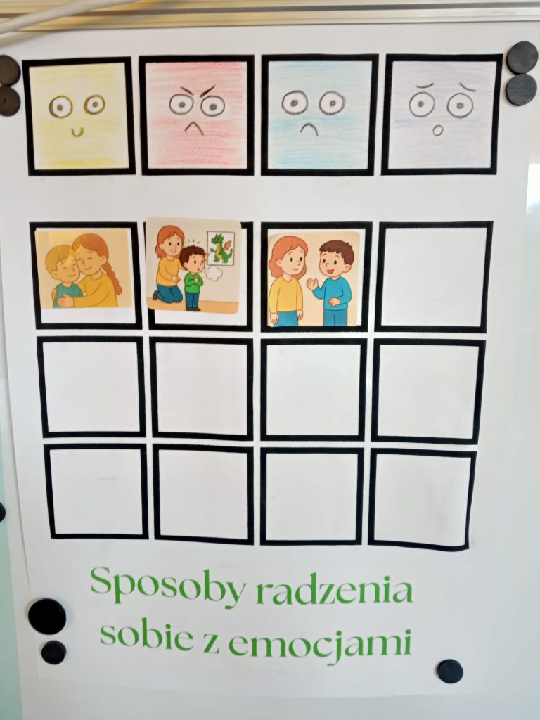 14 listopada odbyły się trzecie z cyklu dziewięciu spotkań z dziećmi jakie przygotowała pani Oliwia – psycholog. Tym razem dzieci poznały opowieść o Franku. Dowiedziały się jak można radzić sobie ze złością. Poznały technikę „smoczego oddechu” i dzieliły się swoimi emocjami.