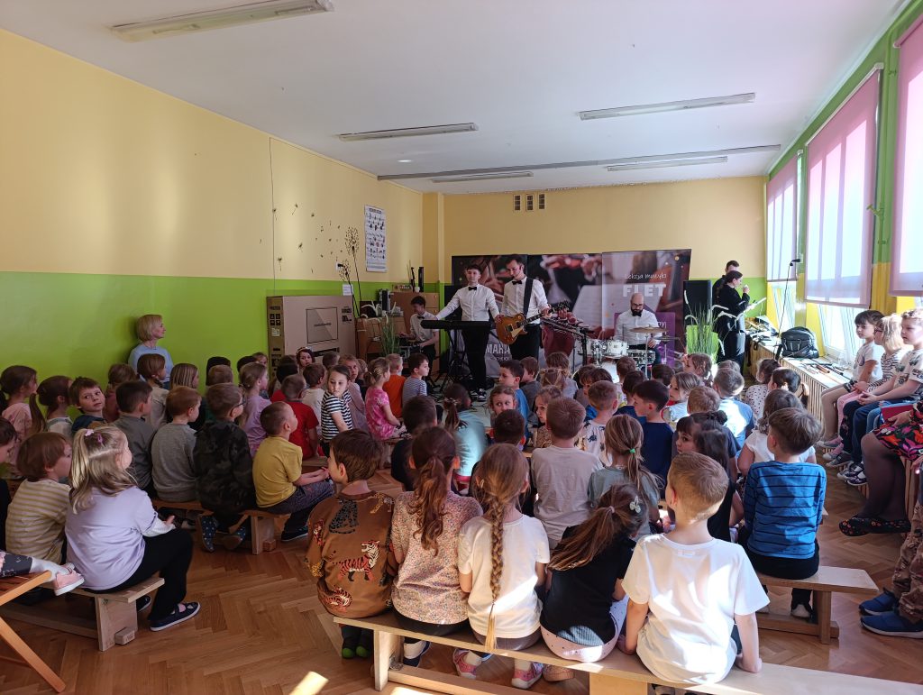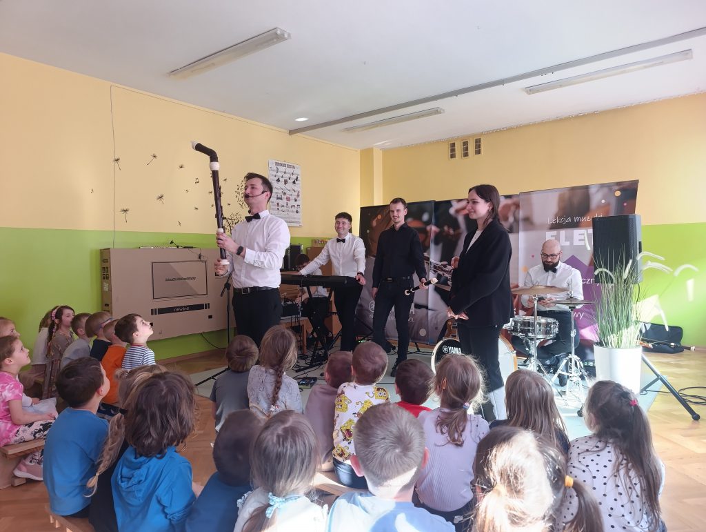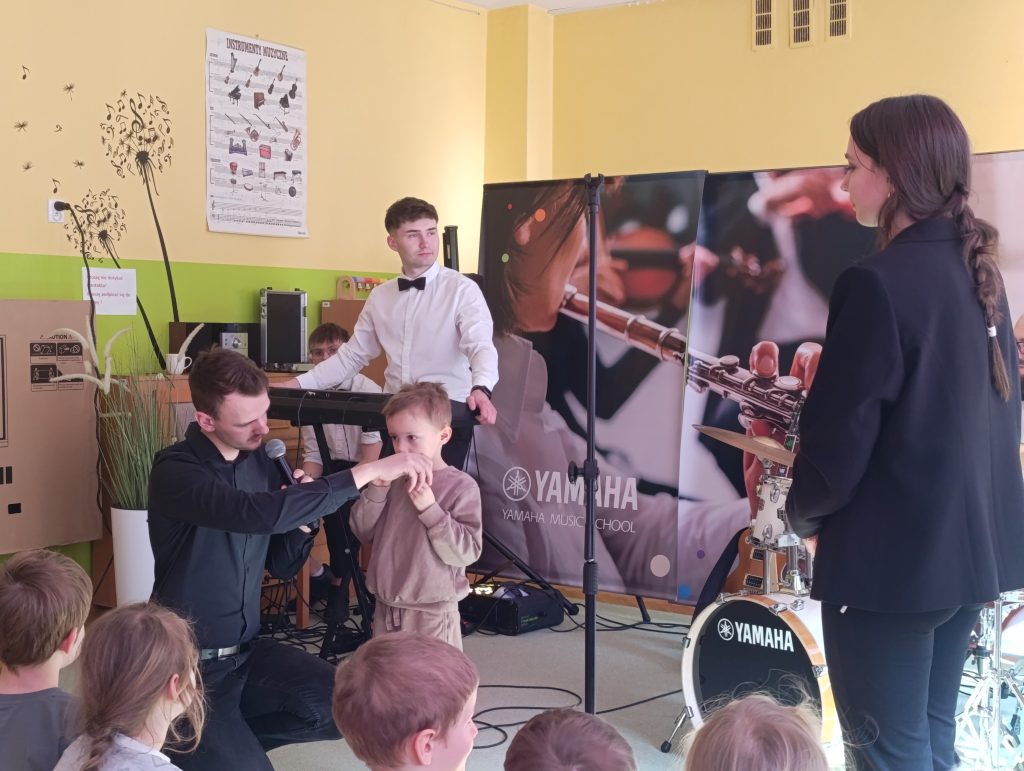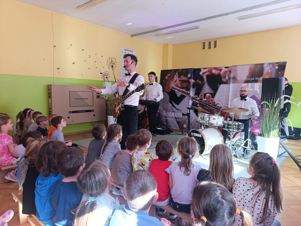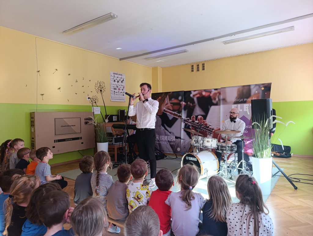 Nasze przedszkole odwiedziła Yamaha Music School dając fantastyczny koncert pełen energii i radości. Pan Przemek wraz ze swoim zespołem i gośćmi Panią Anią i Panem Filipem przedstawili nam rodzinę instrumentów fletów. Przedszkolaki miały okazję grać na różnych rodzajach fletów a nawet tworzyć trio fletowe.