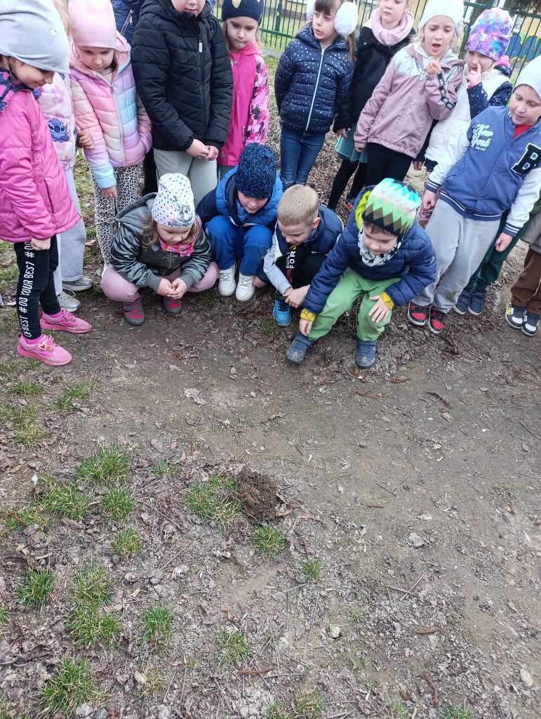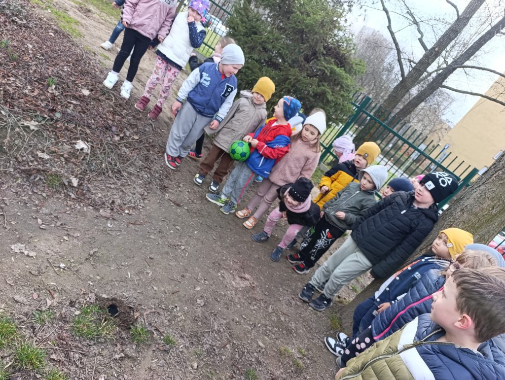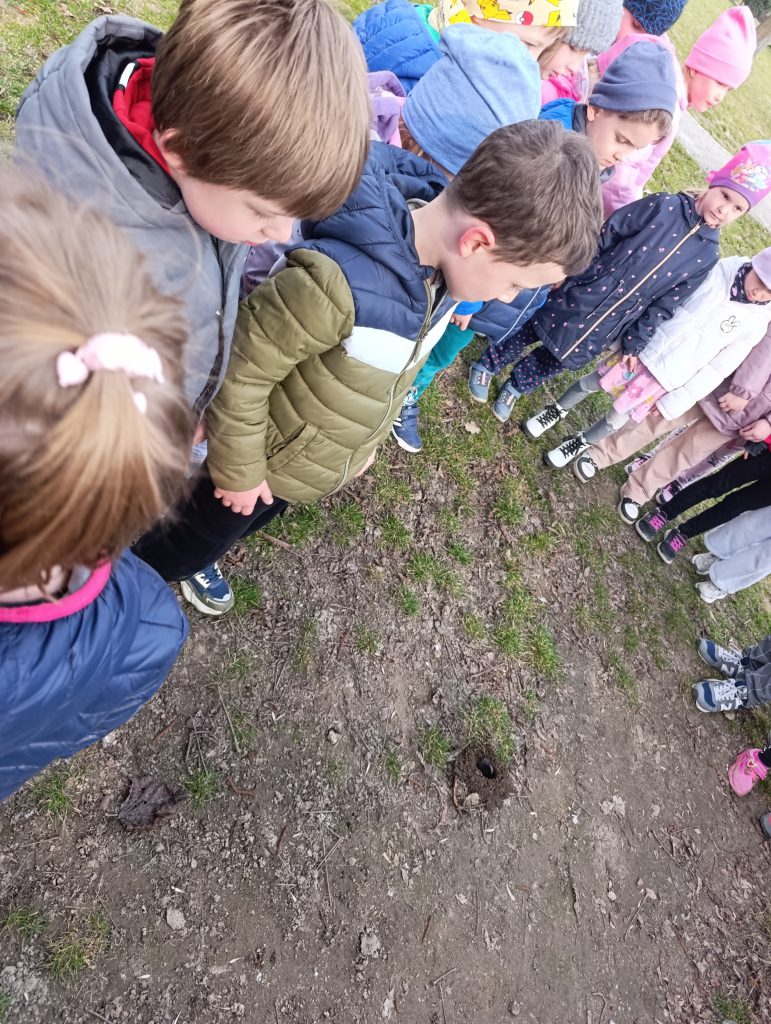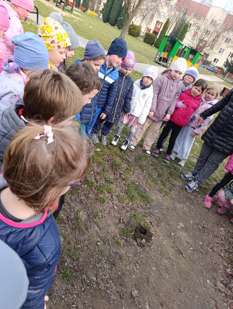 W naszym ogrodzie żyje wiele ciekawych zwierząt, Przedszkolaki mają możliwość obserwowania zająca szaraka, który mieszka pod zjeżdżalnią, wiewiórek, które radośnie biegają i skaczą po naszych drzewach oraz ptaków: sójek, sikorek, kawek, gołębi, wron, srok. Przedszkolakom udało się dojrzeć kreta, który zaczynał swoja pracę – drążenia tunelu.