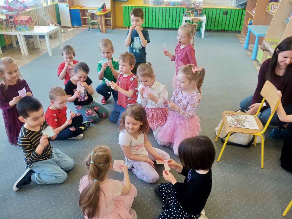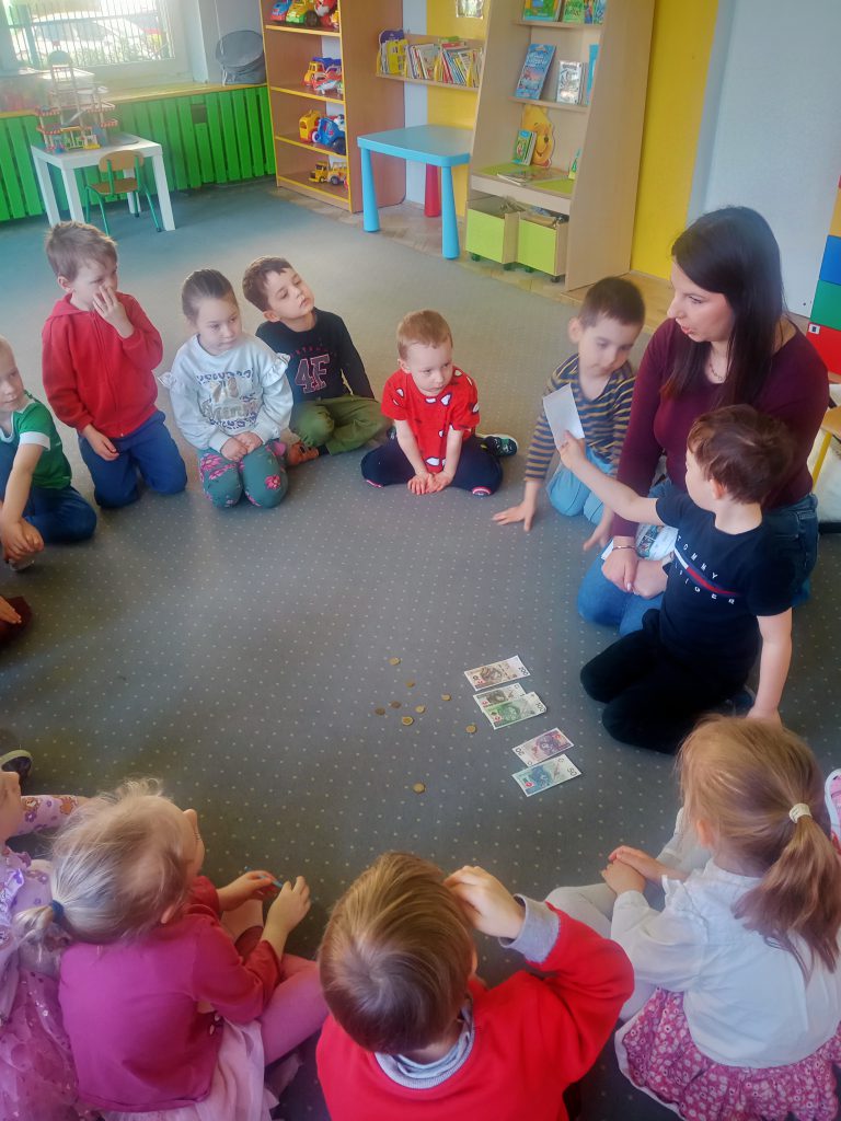 Na koniec przedszkolaki otrzymały pieniądze niespodzianki, które zjadły ze smakiem.